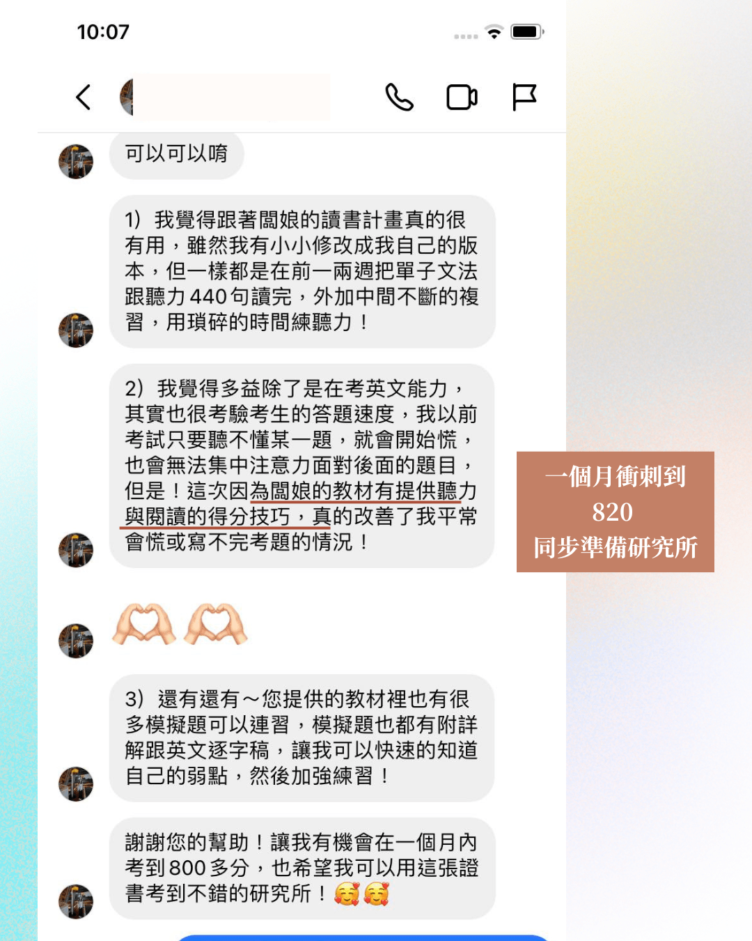 每天只需投入 40 分鐘到 1 小時,就能穩定跟上進度突破高分。
