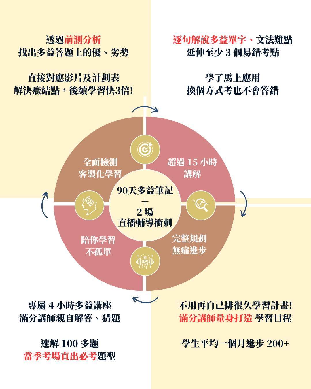 -> 最後在猜題直播把有癥結點的部分解決,高效提分!